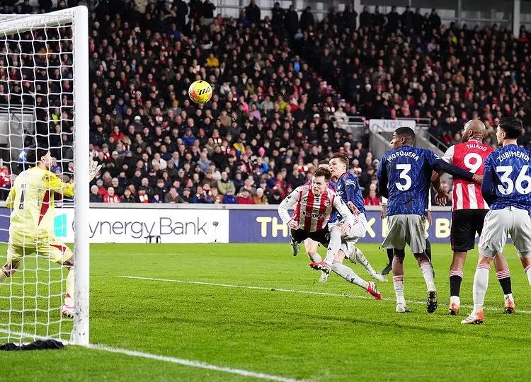 Keane Lewis-Potter’s diving header to net the equalizer for the Bees. (Daily Mail)