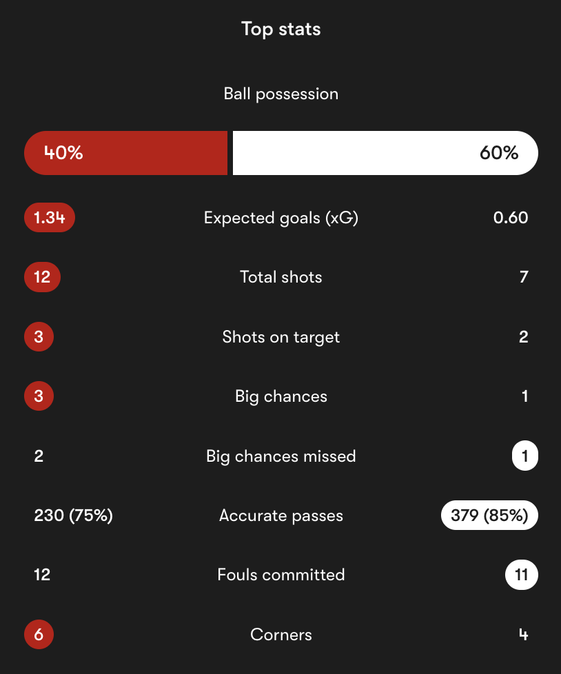 While the score ended level, the underlying numbers suggest the Bees were the better side tonight ➡️
